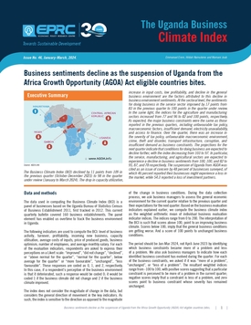 Business sentiments decline as the suspension of Uganda from the Africa Growth Opportunity (AGOA) Act eligible countries bites.